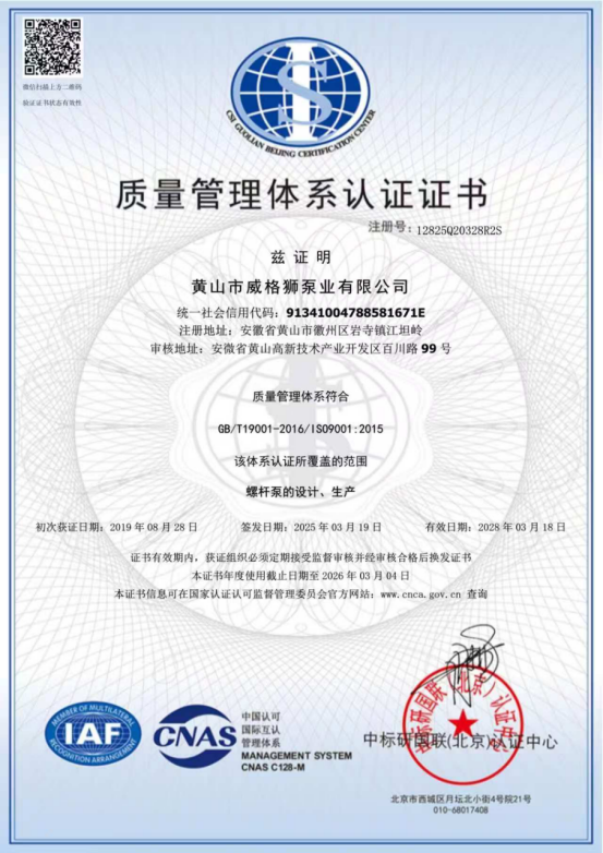 Our certification covers “design, production, inspection, and after-sales service of twin-screw multiphase pumps.” Here’s how it protects you: